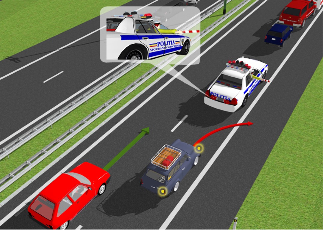 Acest semnal semnifică oprire pentru conducătorii vehiculelor care circulă în spateleautovehiculului poliţiei.
